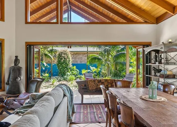 A kitchen with a microwave oven, a refrigerator, and kitchenware is available at the villa. Getting to Ballina Byron Gateway airport will take about 20 minutes by car.